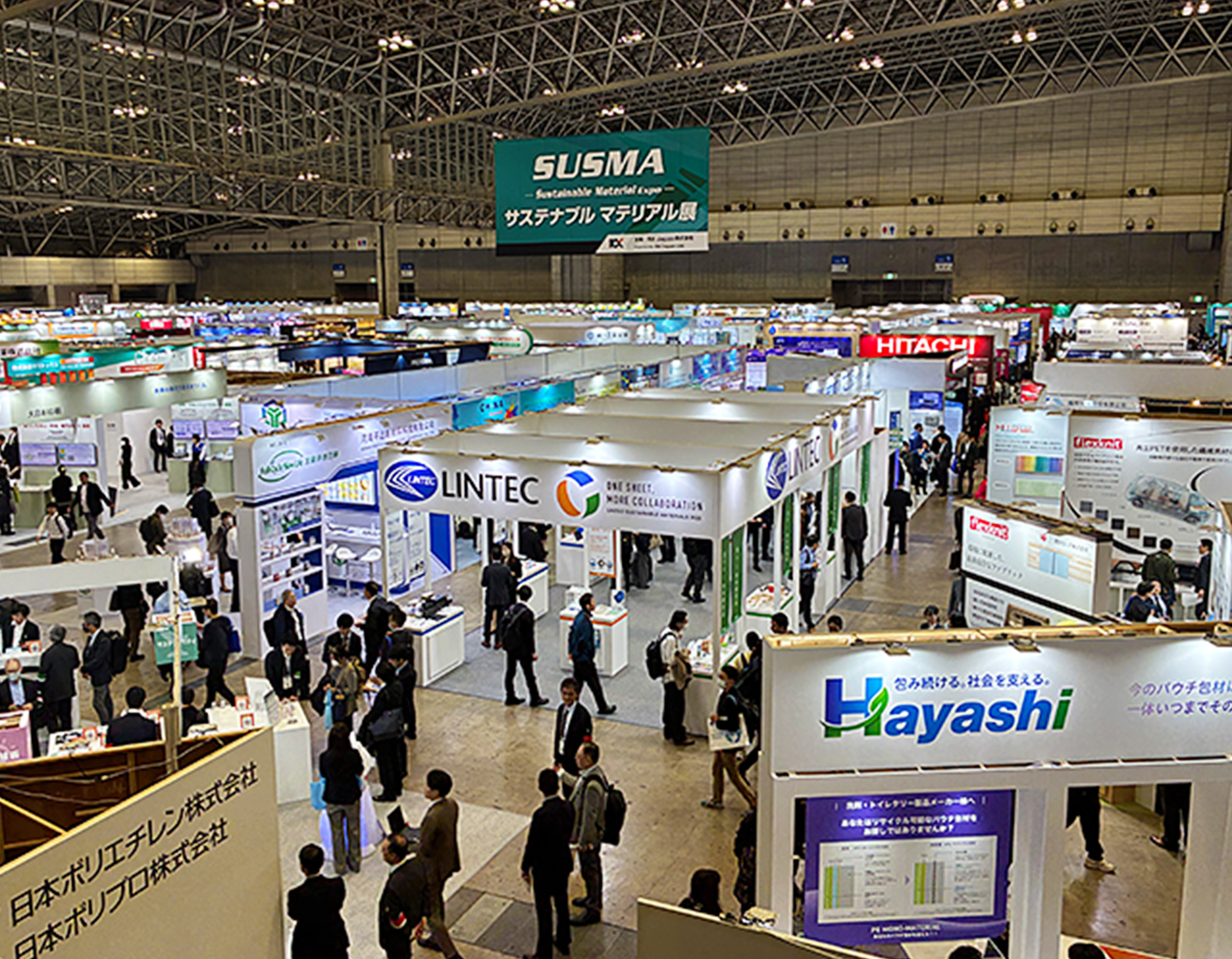 「高機能素材Week」は、機能性フィルム・プラスチック・セルロース・炭素繊維複合材・金属・セラミックスなどの最先端の素材技術が一堂に出展する世界最大規模の展示会です。その中の「サステナブル マテリアル展」はサステナブル材料(環境配慮型材料)およびその製造・リサイクル技術に特化した専門展です。