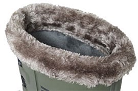 また、総丈約30cm(Mサイズ時)のボディは軽量配合ラバー、裏地には起毛布+厚さ6mmのウレタンを使用し、軽さと暖かさにも配慮。履き口周りの寸法は約38cm(Mサイズ時)で脱ぎ履きも快適。ヒール高は約4cm(Mサイズ時)で底冷えにも対応。踵部分には、両手が塞がっていても靴が脱ぎやすい突起(キックダウングリップ)を装着しています。