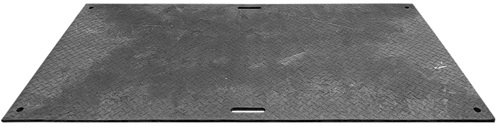 従来、敷板は鉄製が多く使われていましたが、重量があるため移動や設置にはクレーン付きトラックが必要となります。濡れると滑りやすくなり、作業員や運搬車のスリップも起きやすくなります。さらに、鉄製敷板はスクラップとして売却できることから盗難対策も課題となっておりました。