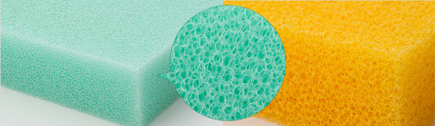 「ムマック®」とは、ウレタンフォームの気泡にあるフィルム状の膜を取り除き、空気や水を通り易くした無膜ウレタンフォームです。無膜化することによりムレにくくなり、水洗いも可能となります。